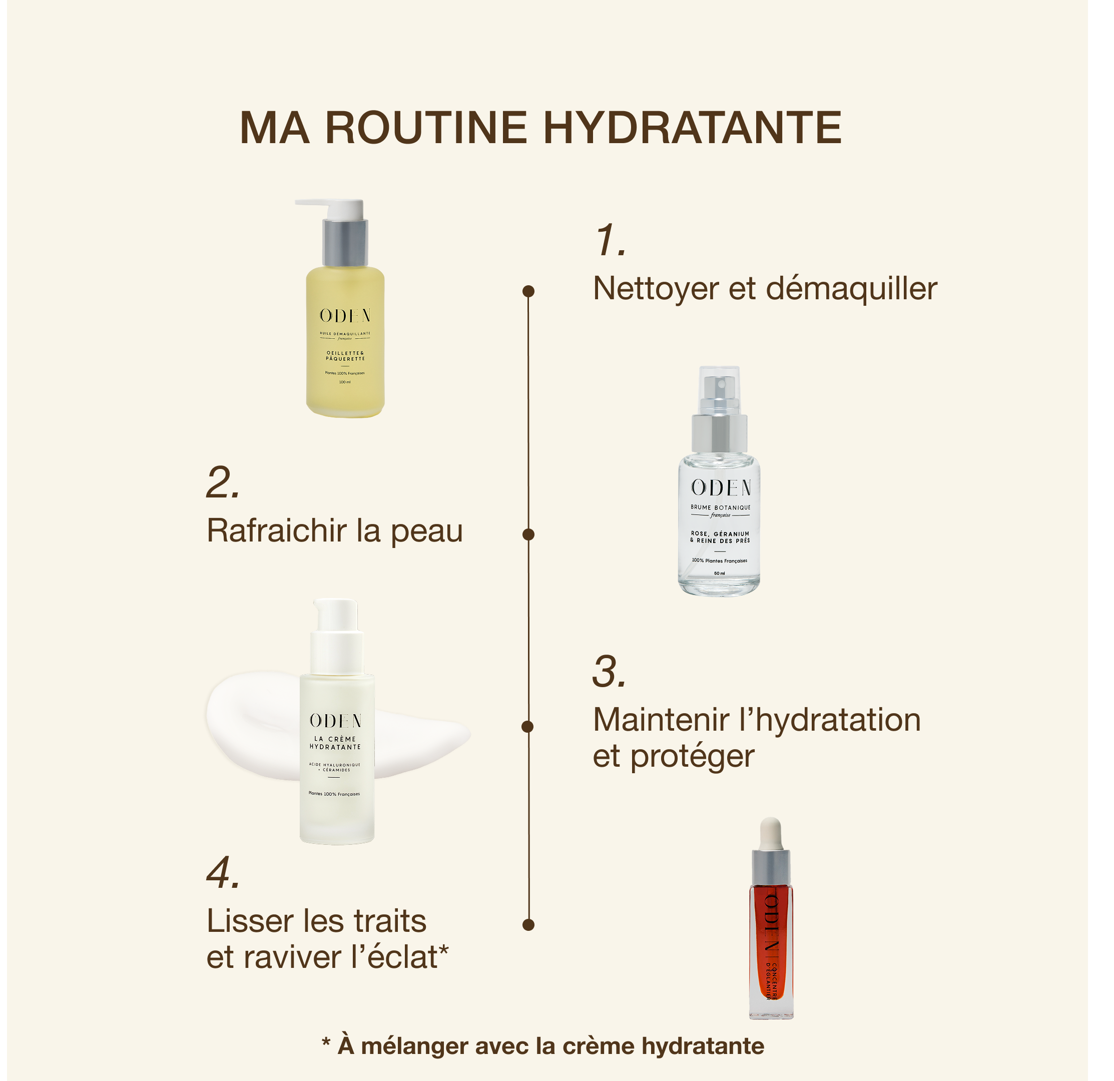 Hydrate et humidifie ma peau pour l'application de mon huile.